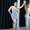 Designed by Australian label Tina Holly, The Coco Gown Style TK551 elegantly flows to the ground in a sweeping floor-length design. Featuring a strapless neckline and a sheer torso adorned with intricate lace appliqué, this gown boasts a form-fitting silhouette that flares into an A-line skirt. It’s completed with a train in the back and a high front slit for a touch of drama. Back Zip Inbuilt Padding Lined All Sizes Are In AUS Care Instructions: Specialist dry clean only Due to the nature of retail, our boutiques may slightly differ in styles, sizes, colours and prices
